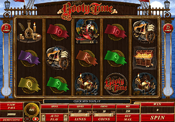 Описывая все характеристики азартного автомата Booty Time, можно сделать вывод, что слот действительно выгодный. В симуляторе имеется иконка разброса – сундук с золотом. По правилам для победы Вам нужно поймать минимум три таких иконки в любых местах на экране. Символ Wild – это изображение с названием аппарата. Количество линий варьируется от 1 до 25 штук, но желательно активировать сразу все полосы. Размер джекпота – 2500 монет. Лучше всего крутить барабаны по максимальной ставке. Современная функция авто вращений считается одним из преимуществ данной модели. Вам не нужно будет каждый раз нажимать на кнопку запуска барабанов, а все призы моментально прибавляются к основному балансу.